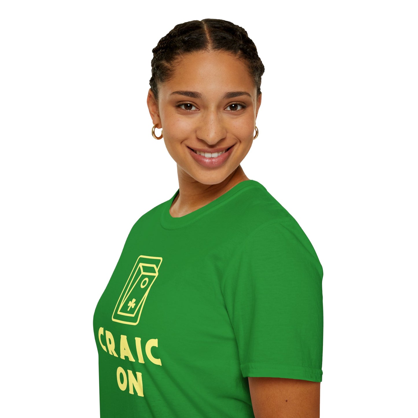 Our CRAIC ON Unisex Softstyle 100% Cotton T-Shirt is for all those who keep the good times rolling. Irish life, always switched on and ready for the next laugh. Wear it, live it, let the craic flow.