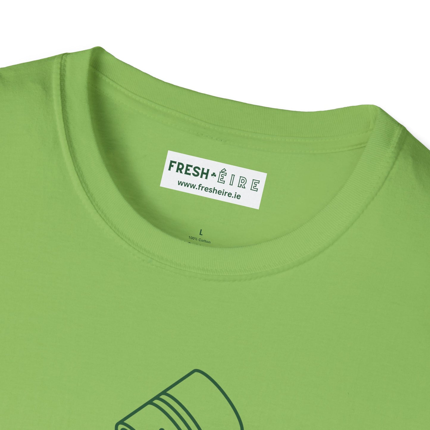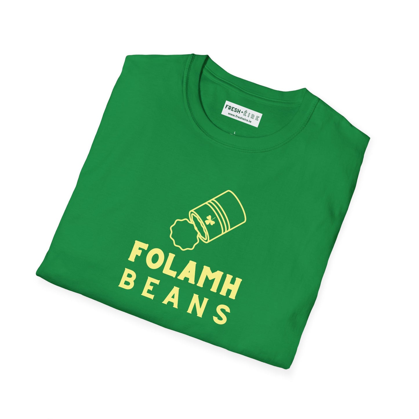 Embrace the playful charm of Irish wit and gumption with our FOLAMH BEANS Unisex Softsyle T-shirt. Featuring an upside down empty can of beans adorned with a shamrock, this tee ironically juxtaposes the Irish word "Folamh," meaning "empty" with its pronunciation sounding like "full of." It's a cheeky twist on the expression "full of beans," symbolizing energy and vitality generally found with the Irish Craic. Crafted for comfort and style, this tee is perfect for those who appreciate a play on words. Wear it with a smile and let its humour spark conversations and brighten your day. Add a touch of Irish whimsy to your wardrobe with our FOLAMH BEANS T-shirt and let your sense of humour shine.