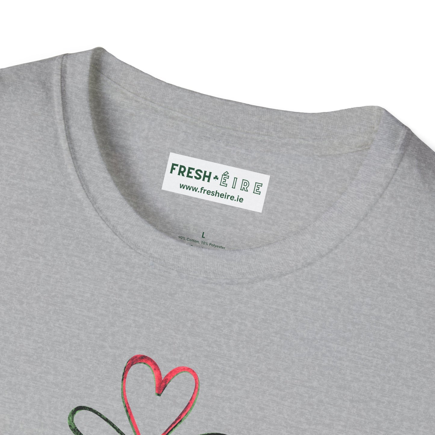 Embrace the spirit of love and gratitude with our GRÁTITUDE Unisex Softstyle 100% Cotton T-Shirt. This unique design features the word "Grátitude" beneath an outline of a shamrock, with the top leaf transformed into a red heart. The word "grá" means love in Irish, making this shirt a play on the word "gratitude" and a nod to the idea of having an attitude of love. * Perfect Gift: Ideal for birthdays, St. Patrick’s Day, or any occasion to celebrate Irish culture and love. Show your love and gratitude with this stylish and meaningful t-shirt. Order yours today and wear your "Grátitude" with pride!s Celebrate love, gratitude, and the rich culture of Ireland with our "Grátitude" Unisex Softstyle T-shirt. Perfect for any occasion, this shirt is a great way to express your love attitude. Order now and spread the message of "Grátitude"!